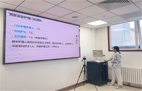 汇报结束后,质控专家们在关丽的陪同下,通过实地考察、查看资料等多种形式,对北京中医护理示范门诊皮科护理门诊从门诊区域设置、设施设备、人员配备、岗位培训、技术要求、日常工作管理、消毒隔离、人员管理、应急处置管理、信息化管理等十个方面进行了严格的督导检查,重点关注医护人员护理技能、服务态度、患者评价等方面指标。
